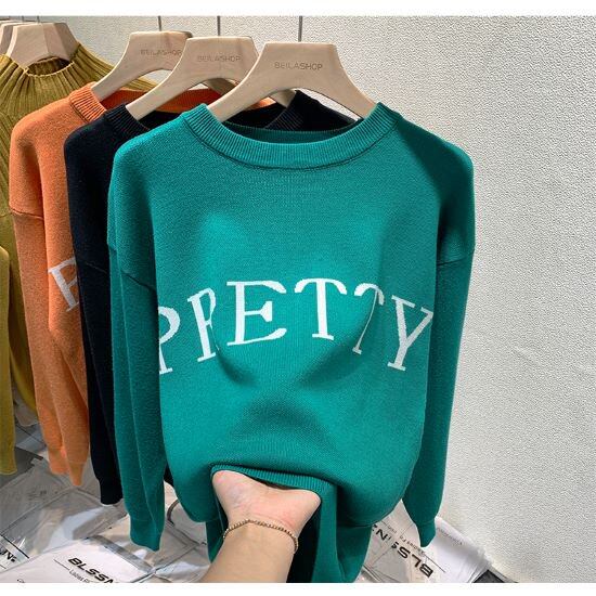 ニット セーター レディース ロゴ カジュアル トップス 秋 冬 長袖 ロゴニット かわいい ゆったり レディースセーター カジュアルニット オーバーサイズ 英字