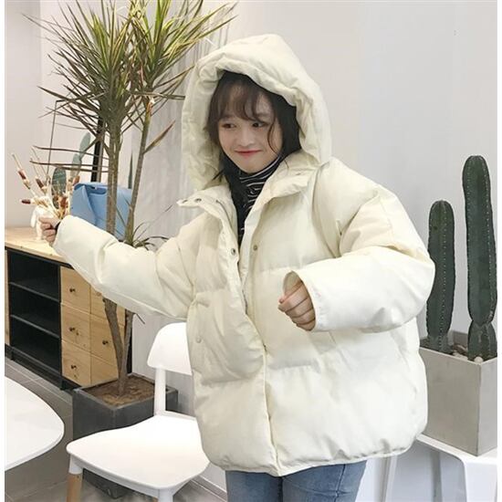 【取寄】ダウンジャケット レディースコート ルーズショート 大きいサイズ ゆったり 体型カバー ショートダウンコート アウター レディースアウター 2XL あったか フート付 レディースジャケット 無地 長袖