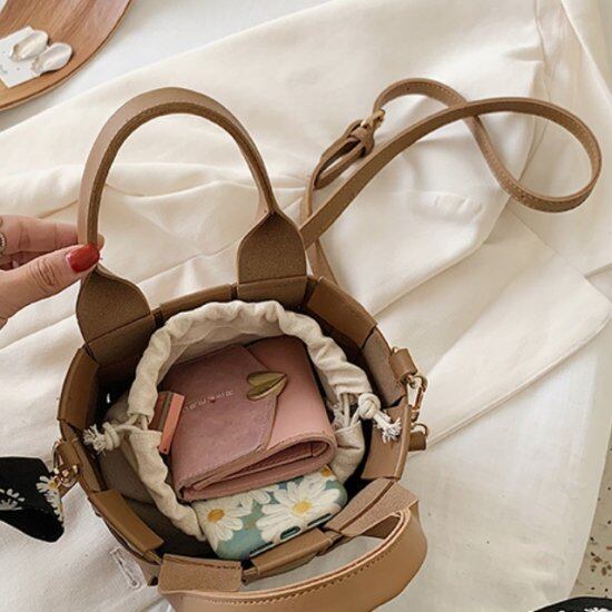 ショルダーバッグ ミニトート ミニサイズ 小さいサイズ レディース 巾着 ウェーブ編み 高見え シンプル カジュアル 上品 大人 2WAY クロスボディ トートバッグ ショルダーバッグ 可愛い