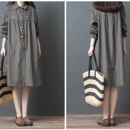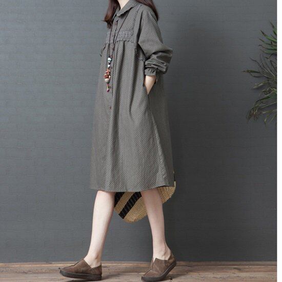 ワンピース ワンピースドレス 長袖 大きい ミドル丈 レディース マキシ レディースファッション 春 秋 大きいサイズ ワンピ 大人カジュアル 膝丈 ひざ丈 スカート 水玉 ドット柄 シャツワンピ