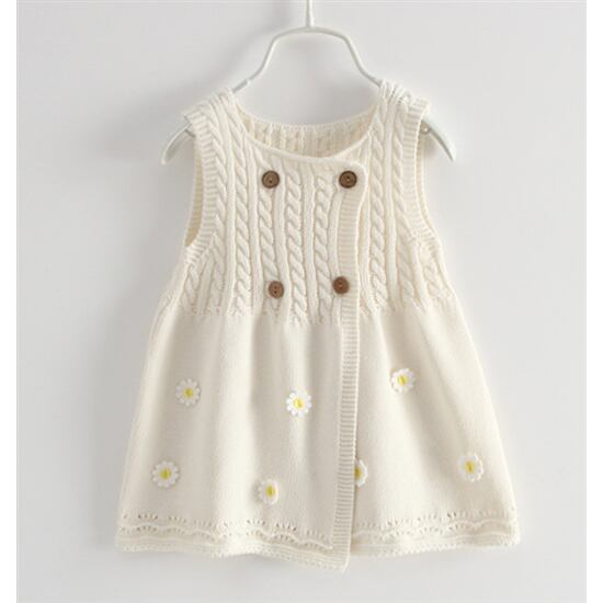 セーターベスト キッズ 90-140cm ベビー 女の子 春服 秋服 ニットセーター 花柄 前開き ニットベスト 子供服 タンクトップ 可愛い ノースリーブ 丸首 タンクトップ 重ね着 ふんわり