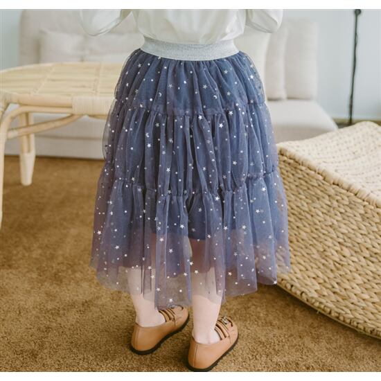 ロングスカート 春秋服 ドット柄 メッシュ 姫スカート 子供服 星柄 ふんわり 発表会 おそろい フェアリースカート キッズスカート プリンセススカート ベールスカート 可愛い おしゃれ 女の子