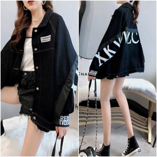 【取寄】長袖デニムジャケット 春服秋服 ブラックデニム ルーズシルエット レディースジャケット 長袖 大きいサイズ おしゃれ ビッグシルエット カジュアル Gジャン アウター 体型カバー ゆったり ジャケット