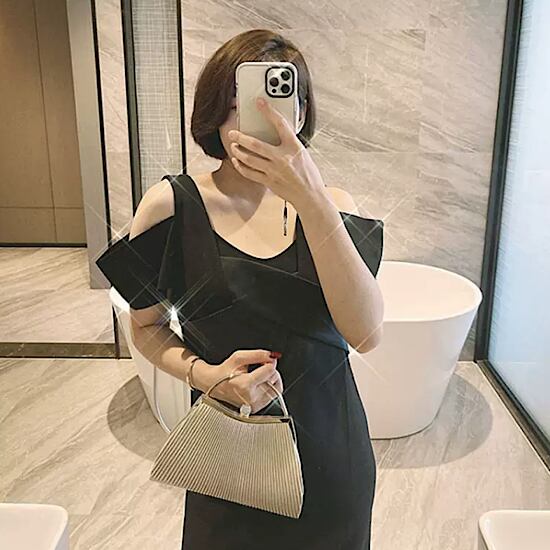 ラメ入り生地が動く度に上品な輝きを放ち、リュクス感を与えます。