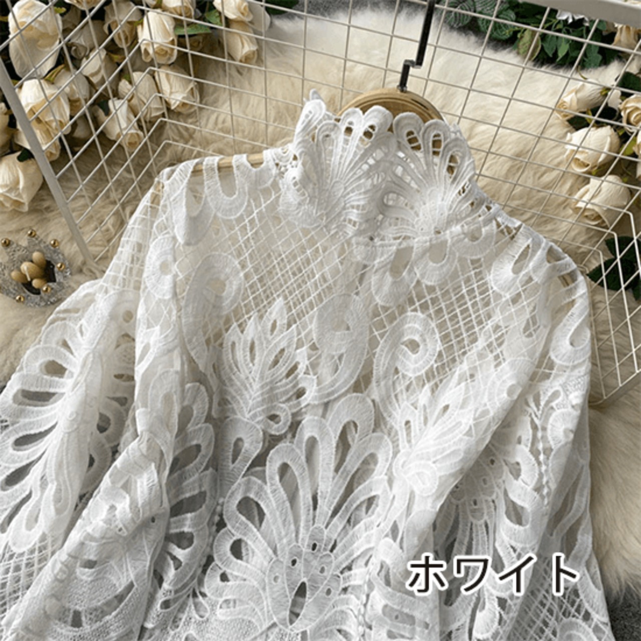 レースブラウス トップス 長袖 レディース 総レース 透け ハイネック ショート丈 トップス 花柄 レース トップス 立ち襟 レディース 刺繍 シースルー シアー バルーン袖 レース 大人可愛い