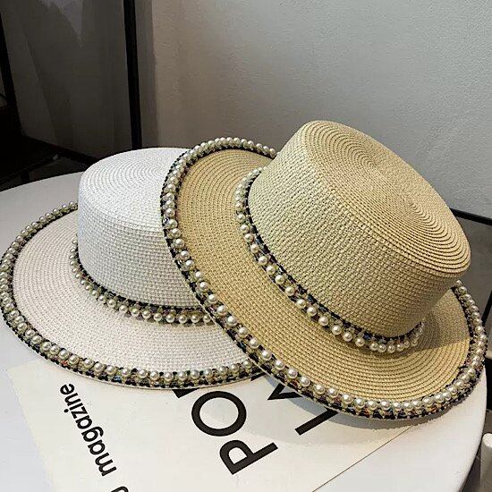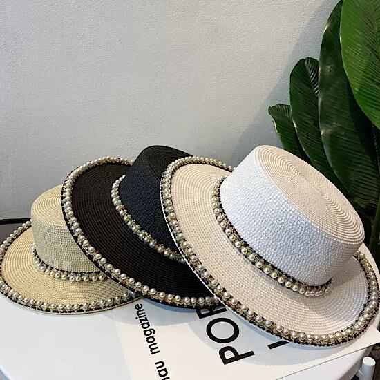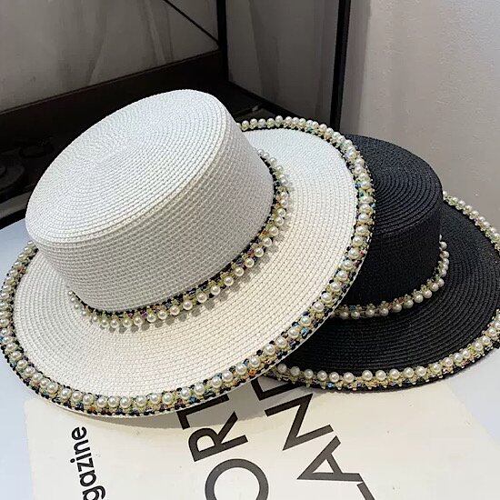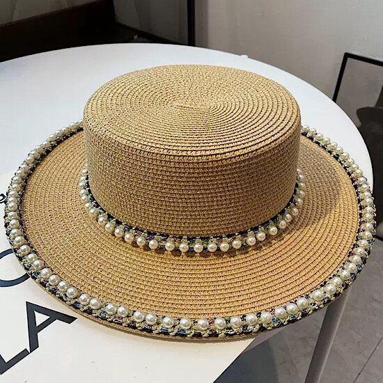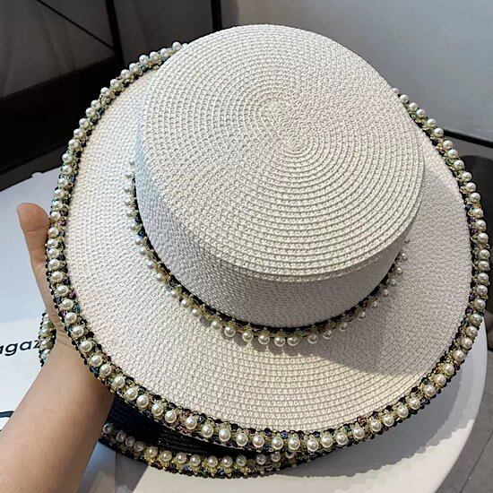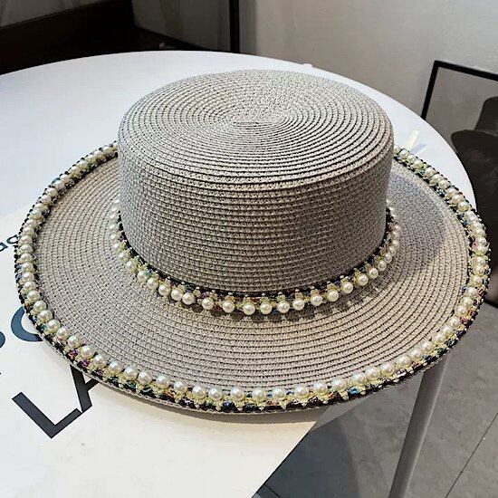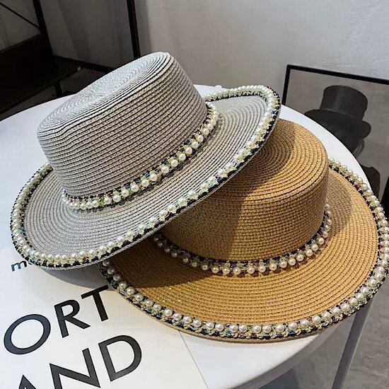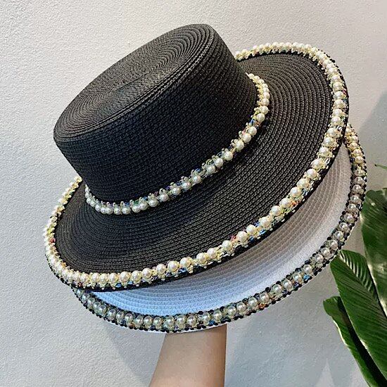 パールビジューがエレガントな表情をプラスするカンカン帽。