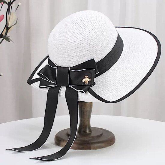 帽子 ビックリボン バイカラー エレガント 女優帽 ファッション小物 日焼け対策 UVカット 日よけ レディース 無地 春夏 新作 清楚 大人スタイル モダン ラグジュアリー アクセサリー