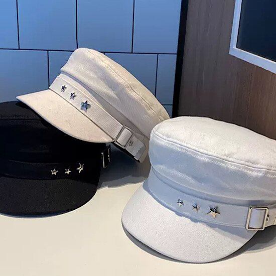 帽子 スター キャスケット キャップ キュート 個性的 カジュアル UVカット 日焼け止め帽子 日差しよけ レディース 無地 春 新作 シンプル 大人スタイル レトロ トレンディ クール 夏