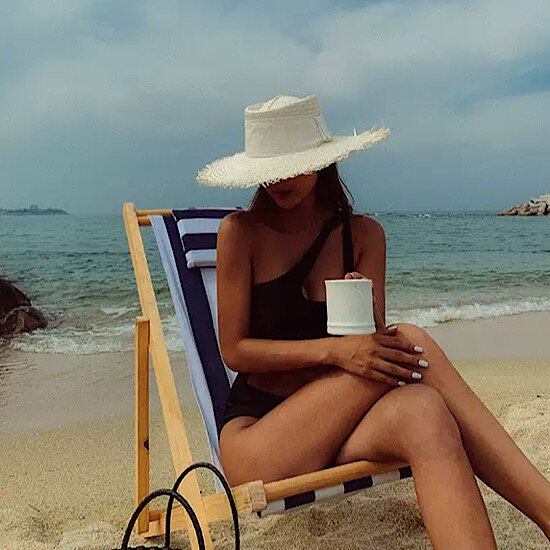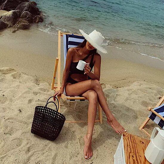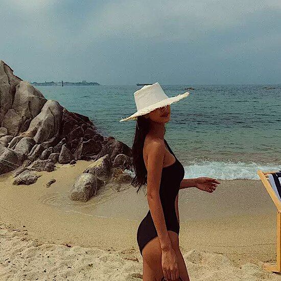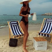 デザイン性が高くビーチ映えするアシンメトリーワンピース水着。