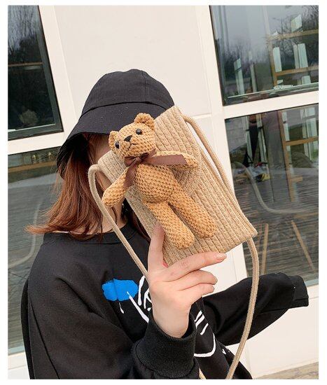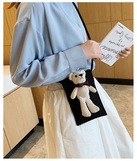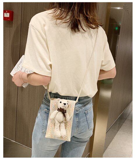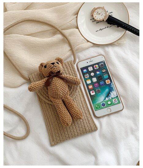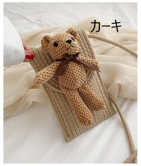 スマホポシェット ポーチ レディース チャーム付き スマホケース ベア ショルダーバッグ スマホショルダー おしゃれ かわいい ミニショルダーバッグ 縦 斜め掛けバッグ コンパクト 携帯入れ