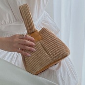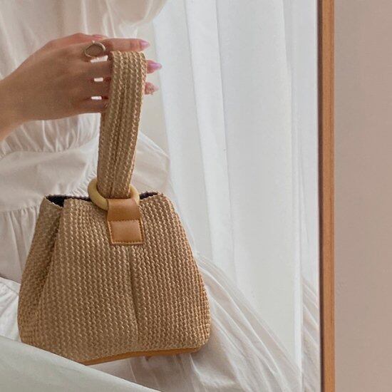 編み込みバッグ ポーチバッグ ミニバッグ レディースかわいい 夏 韓国ファッション サマーバッグ バケツ型 ハンドバッグ 天然素材 異素材ミックス 編み込みバッグ ポーチバッグ ミニバッグ レディース
