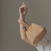 天然素材にフェイクレザーを組み合わせた夏バッグです。