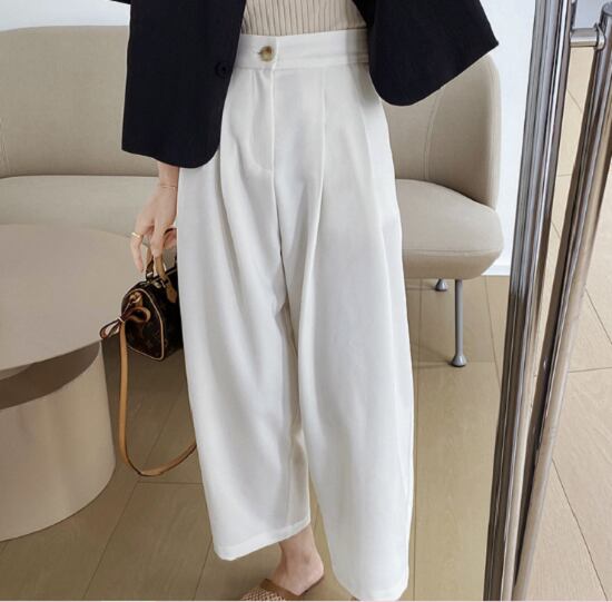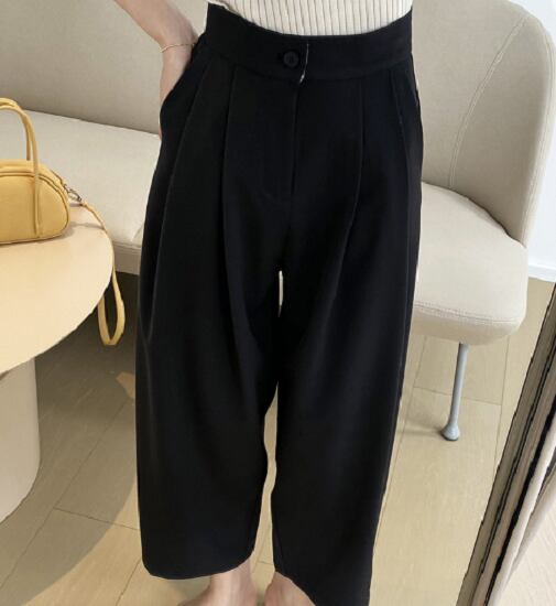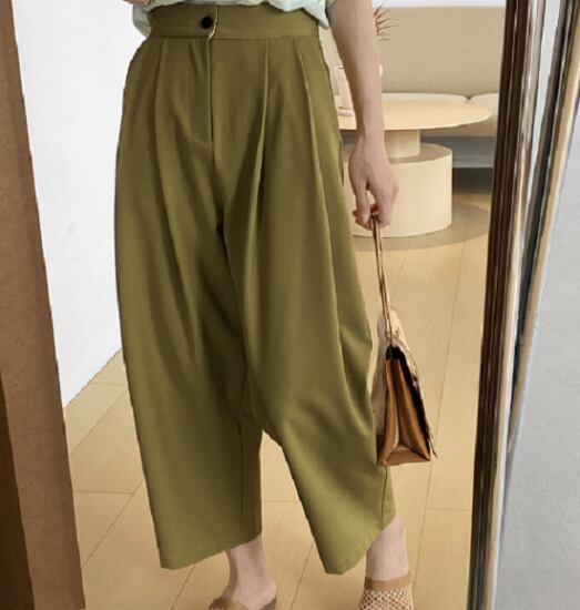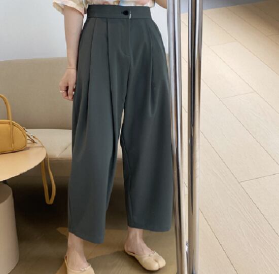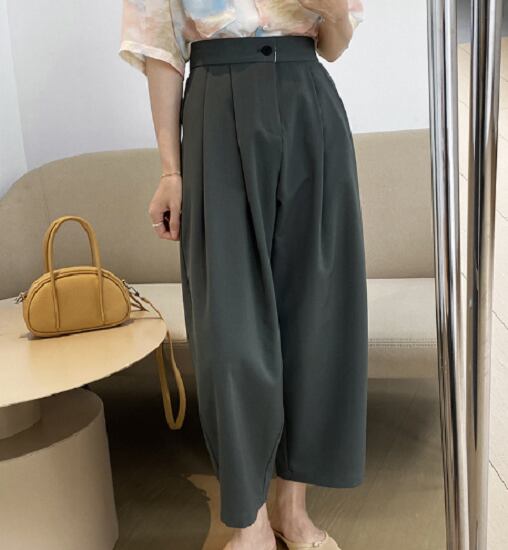 テーパードパンツ レディース クロップド 大きいサイズ ハイウエスト カジュアル ゆったり ボリュームパンツ 夏新作 体型カバー イージーパンツ タック 無地 テーパードパンツ レディース クロップド