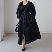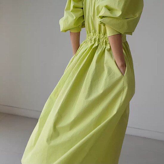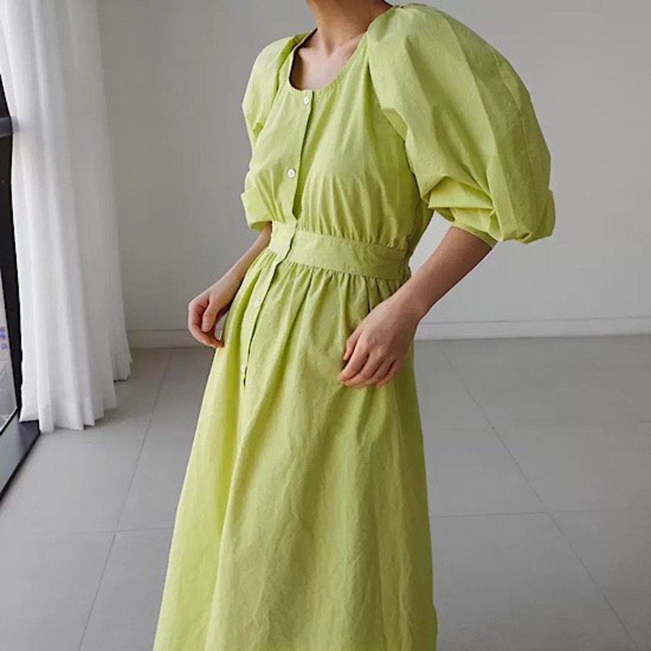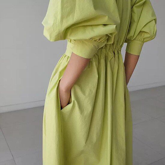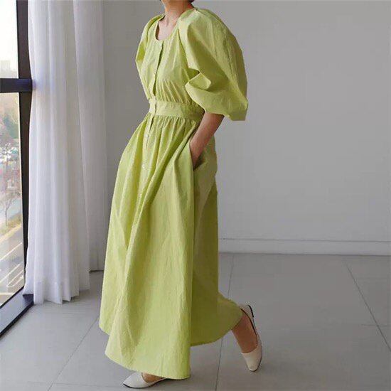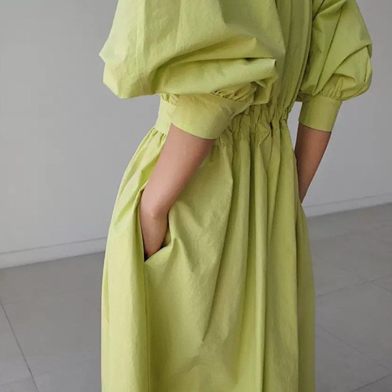 ワンピース ロング丈 トレンド パフスリーブ プルオーバー Aライン レディース 無地 体型カバー 夏 大きいサイズ ゆったり 春 新作 清楚 カジュアル 大人スタイル スプリングウェア