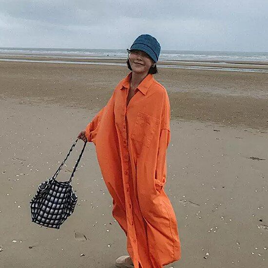 ワンピース フロントボタン ロング丈 長袖 襟付き ボトミングシャツ シャツワンピース レディース 無地 体型カバー 夏 大きいサイズ ゆったり 春 新作 清楚 カジュアル スプリングウェア