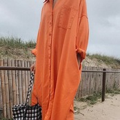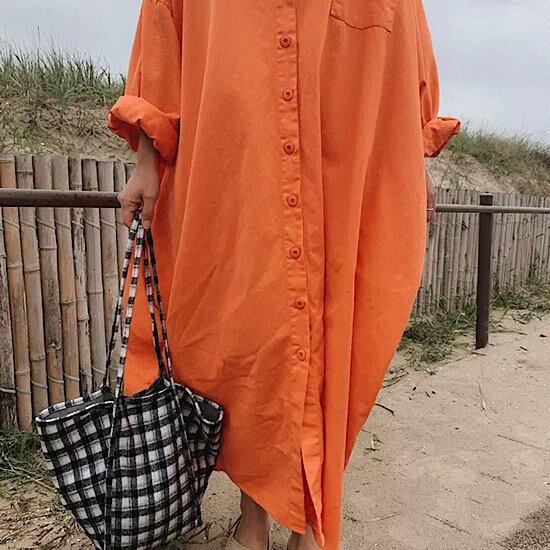 トレンドカラーで首元をすっきり見せ♪ワンピースとしての着用はもちろん、前を開けて羽織りにしたり、パンツとレイヤードしたりと、さまざまな着こなしに大活躍のアイテム!
