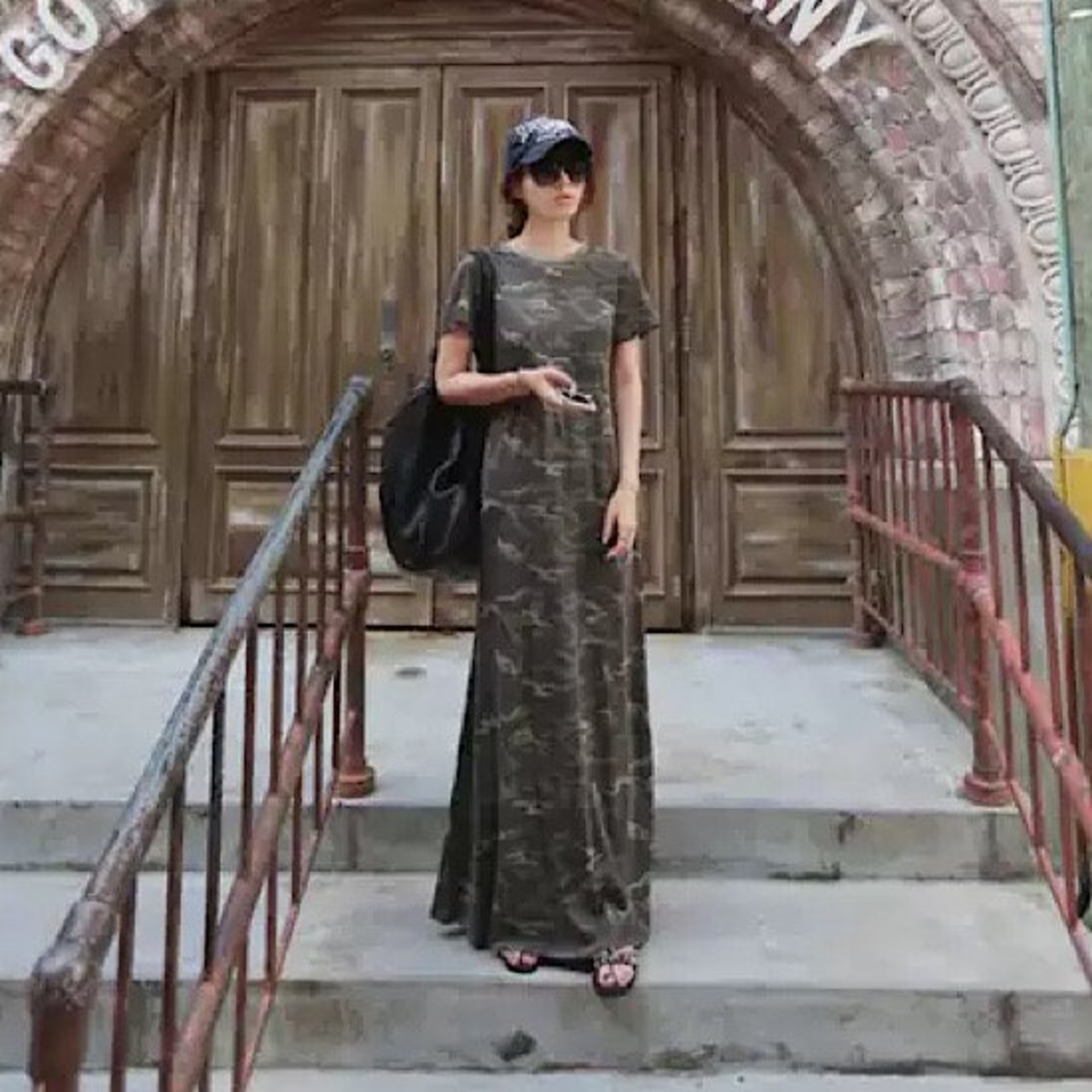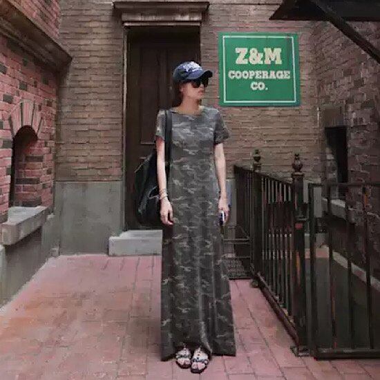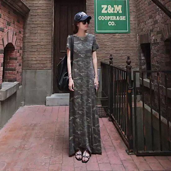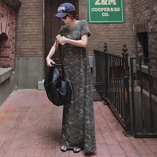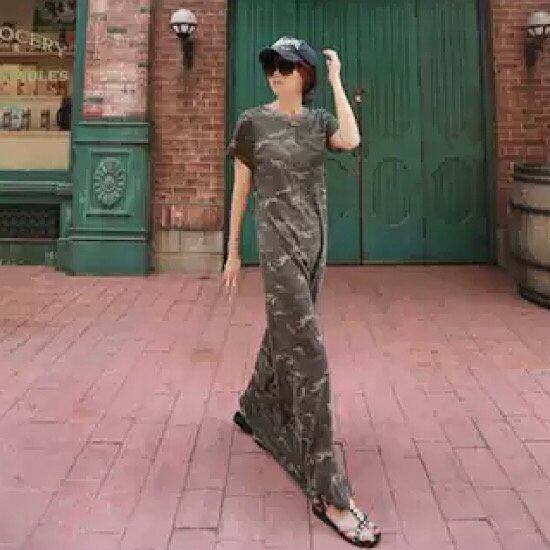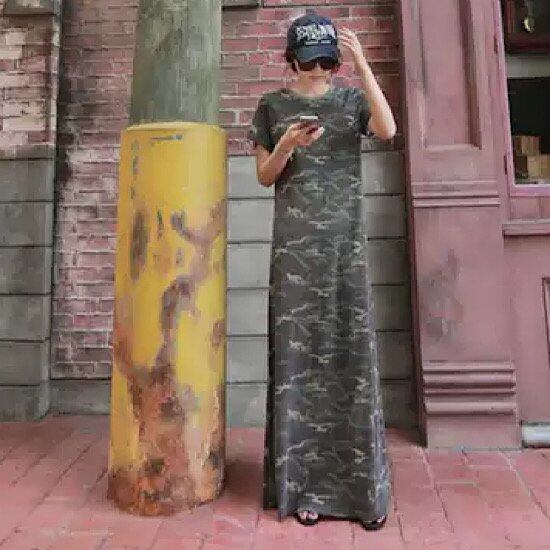 ワンピース マキシ丈 迷彩柄 カモフラージュ 半袖 ラウンドネック レディース 無地 体型カバー 夏 大きいサイズ ゆったり 春 新作 シンプル 清楚 カジュアル 大人スタイル スプリングウェア