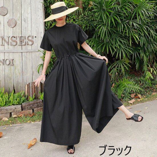 サロペット オールインワン レディース 大きいサイズ ゆったり ワイドパンツ パンツ ズボン半袖 ロング カジュアル 無地 シンプル おしゃれ 春 夏 サロペットパンツ ポケット付き 大人 上品