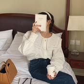 ブラウス シャツ レディース ブラウス セーラーカラー ビッグカラー レース柄 ブラウス 長袖 レディース かわいい おしゃれ ブラウス セーラーカラー ゆったり ビッグカラー ブラウス 長袖