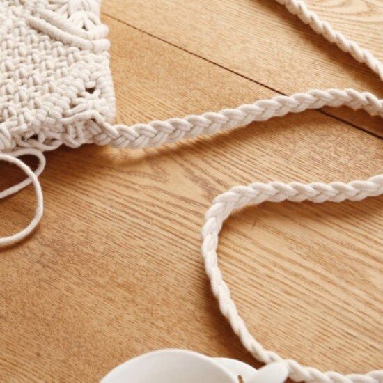 縄編みのデザインがナチュラルでフェミニンな印象です