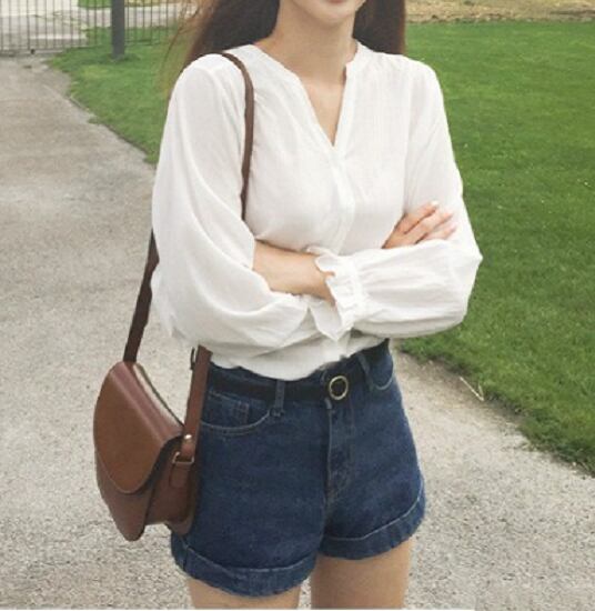 Vネックシャツ レディース ブラウス トップス Vネック シャツ 無地 春夏 20代 30代 体型カバー 白シャツ 長袖 カジュアル おしゃれ Vネックシャツ レディース ブラウス トップス Vネック