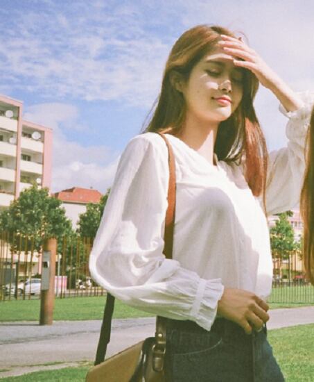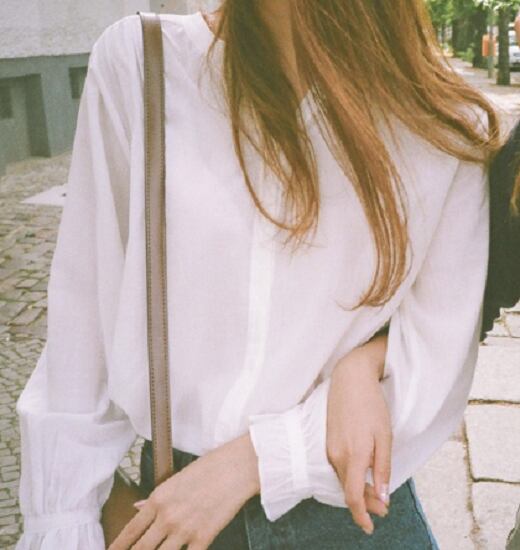 袖口のフリルで可愛らしさも楽しめる一枚です◎
