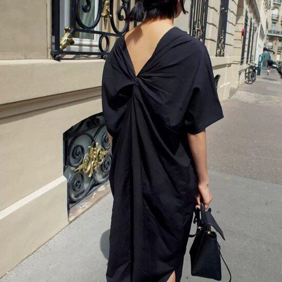 ワンピース バックシャン ロング丈 レディース 無地 体型カバー 夏 大きいサイズ ゆったり 春 新作 清楚 カジュアル 大人スタイル スプリングウェア オープンバック ラウンドネック