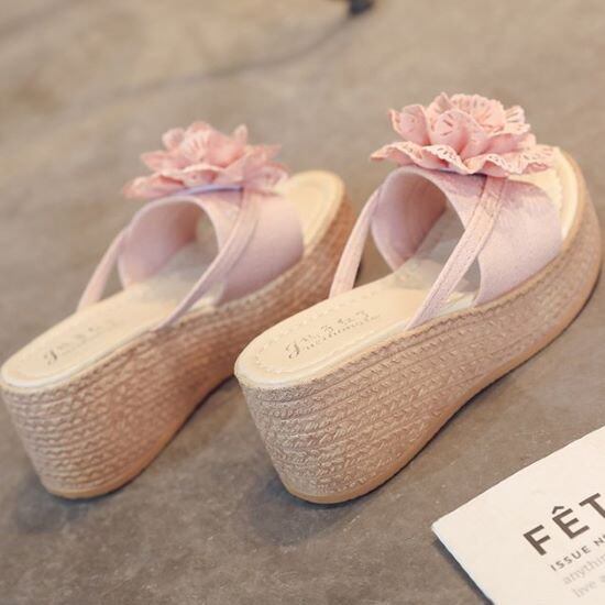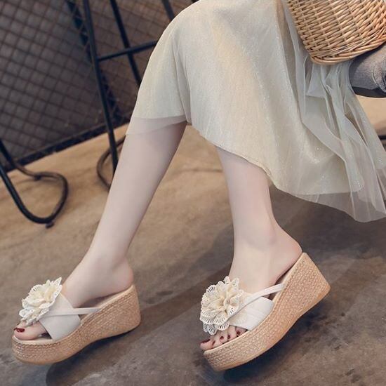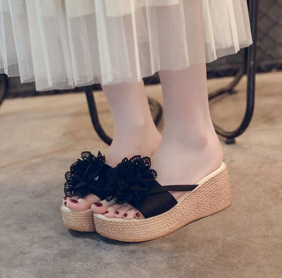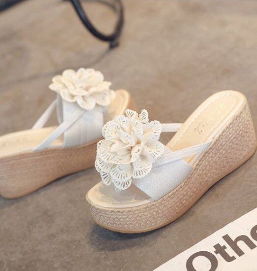 サンダル 厚底サンダル サマー フラワー レディース 10代 20代 30代 ホワイト ピンク ブラック 可愛らしい ガーリー カジュアルスタイル 22.5cm~24.5cm ヒール7.5cm