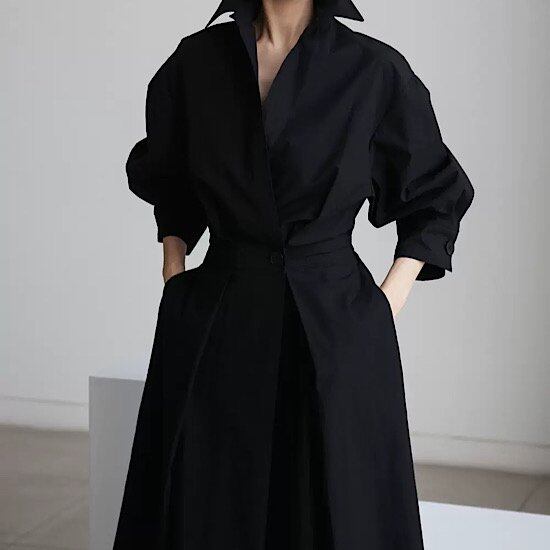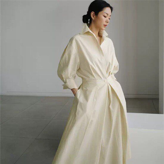 ワンピース ロング丈 ルーズ Aライン ボトミングシャツ レディース 無地 体型カバー 夏 大きいサイズ ゆったり 春 新作 長袖 清楚 カジュアル 大人スタイル スプリングウェア ハイウエスト
