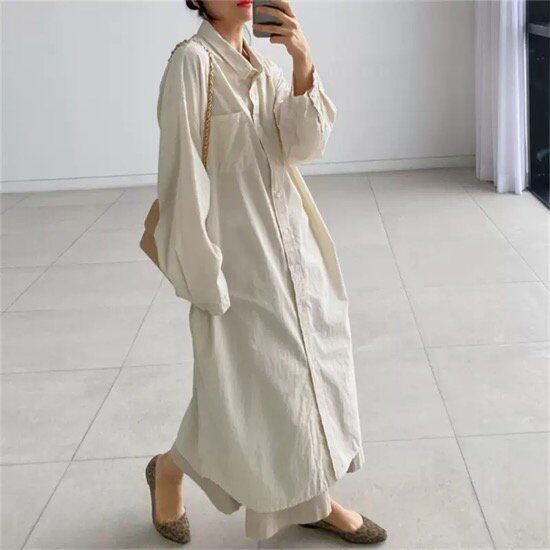 ワンピース シャツワンピース ロング丈 胸ポケット レディース 無地 体型カバー 夏 大きいサイズ ゆったり 春 新作 長袖清楚 カジュアル 大人スタイル スプリングウェア フロントボタン
