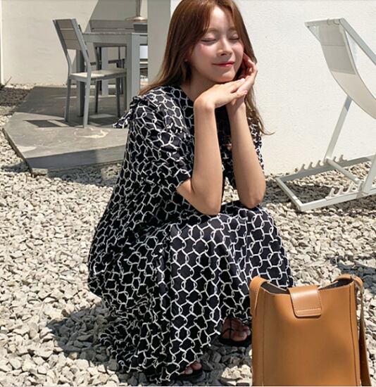 ロングワンピース レディース 春夏 半袖 大きいサイズ 夏新作 体型カバー ゆったり マキシワンピース 30代 40代 モノトーン 大人カジュアル フリル ロングワンピース レディース 春夏 半袖