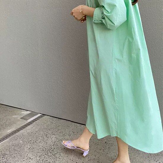 サラッと爽やかな肌ざわりが心地よいシャツワンピース。