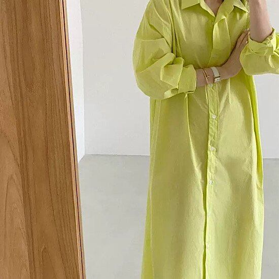 ワンピース シャツワンピース フロントボタン 襟付き ロング丈 レディース 無地 体型カバー 夏 大きいサイズ ゆったり 春 新作 長袖 清楚 カジュアル 大人スタイル スプリングウェア