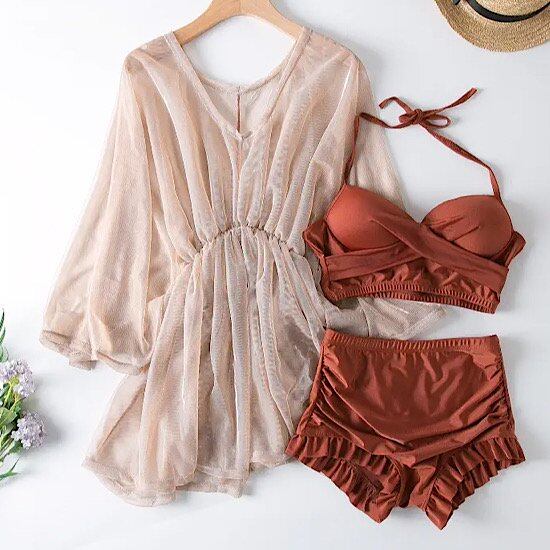 水着 レディース ビキニ 体型カバー 水泳 海水浴 プール ビーチ 夏 3点セット デザイン スイム マリンウェア トレンド リゾート 夏 セクシー スリーピース リゾート ホルターネック フリル