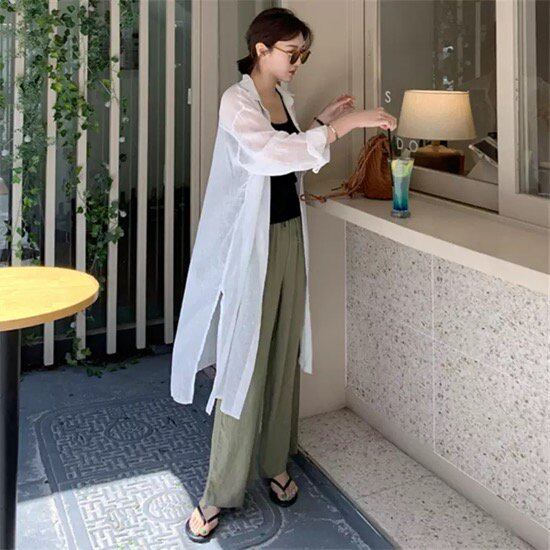 シャツ シアー ルーズ 長袖 シースルー レディース 無地 体型カバー 夏 大きいサイズ ゆったり 春 シンプル 清楚 カジュアル 大人スタイル スプリングウェア フロントボタン オーバーサイズ