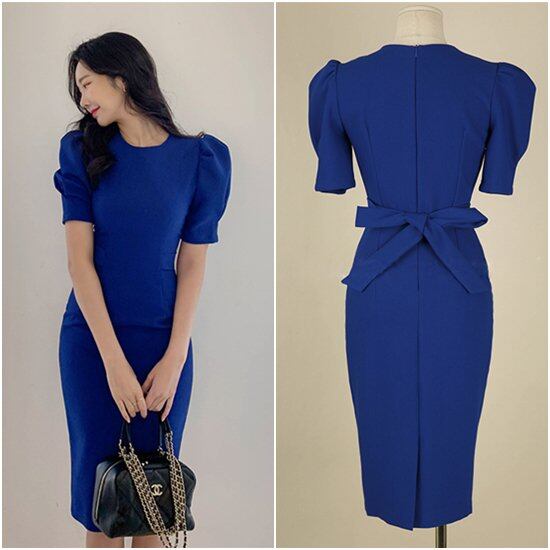 ふんわりパフ袖とスリムラインのデザインが女性らしさを演出してくれます。
