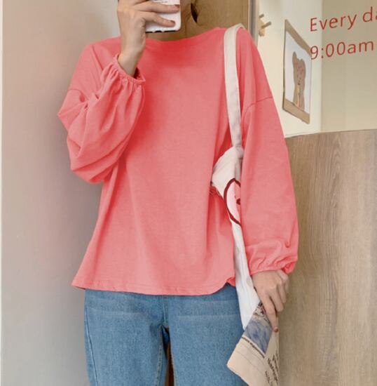 カットソー 長袖 レディース 春夏 バルーンスリーブ トップス カジュアル 無地 シンプル プルオーバー 大きいサイズ 春新作 ゆったり バルーン袖 大人可愛い ブラウス カットソー 長袖 レディース