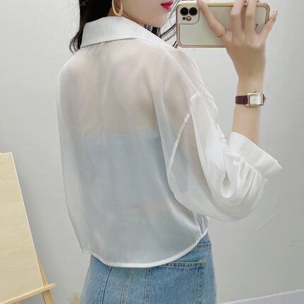 シアーシャツ シアーブラウス トップス 7分袖 羽織 薄手 カラーバリエーション 春 夏 レディース サマー レギュラーカラー 透け感 シースルー UV対策 ショート丈 冷房対策 シンプル