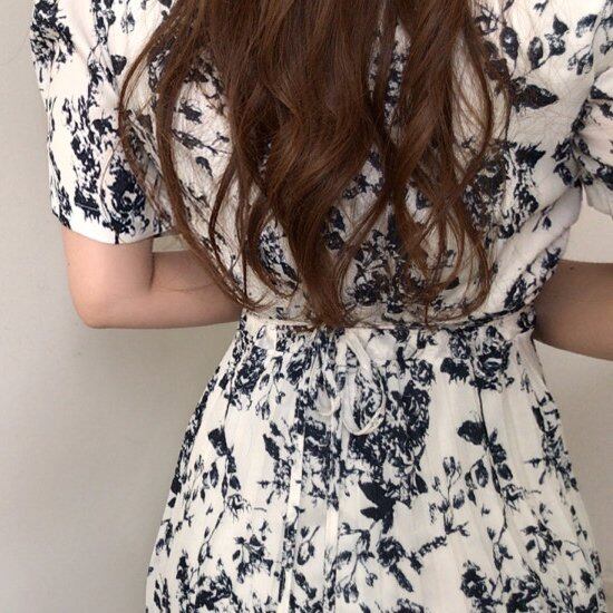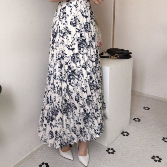 小花柄のレトロな雰囲気と、キュッとしまったハイウエストデザインが上品な大人の雰囲気を醸し出します。