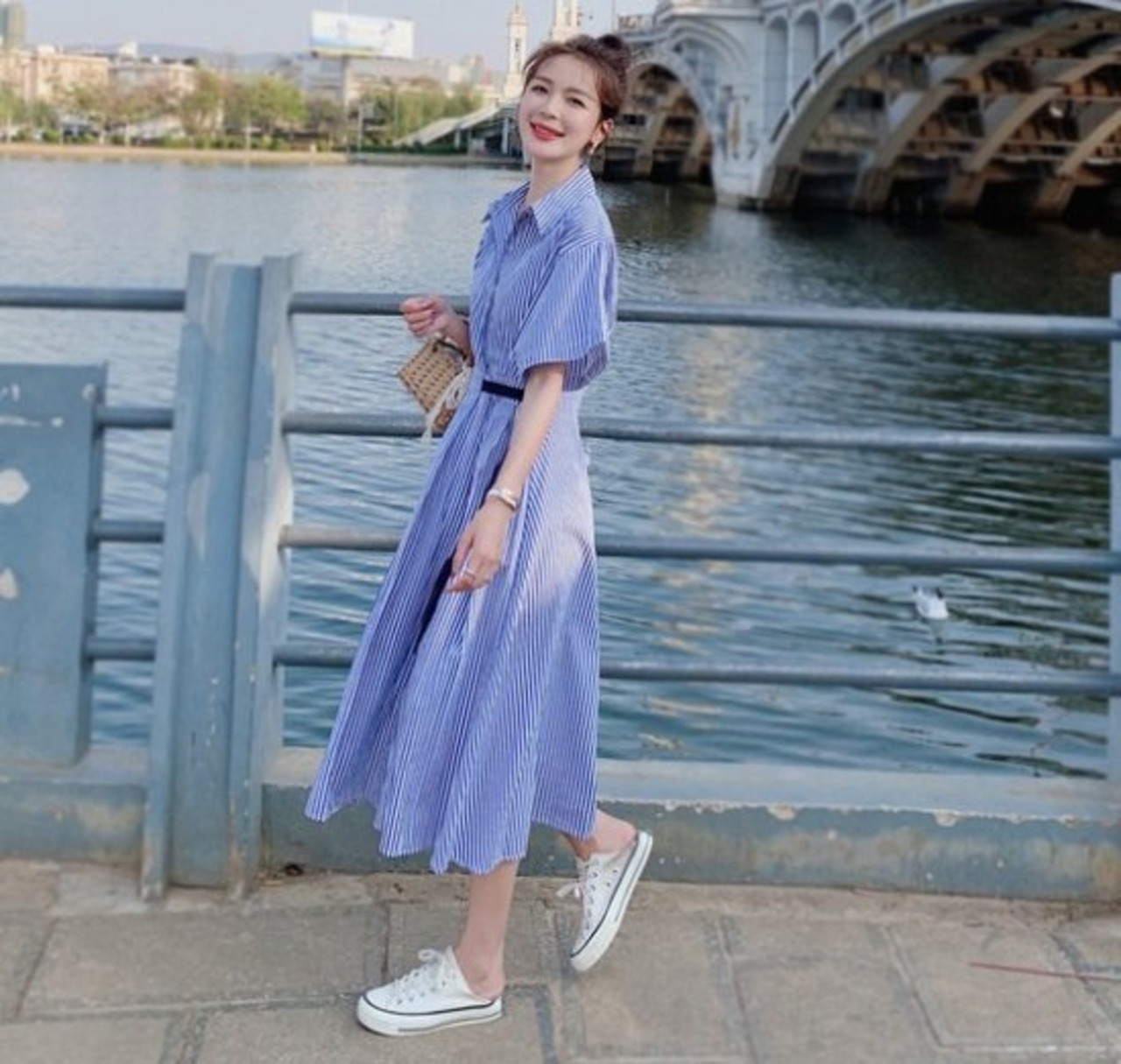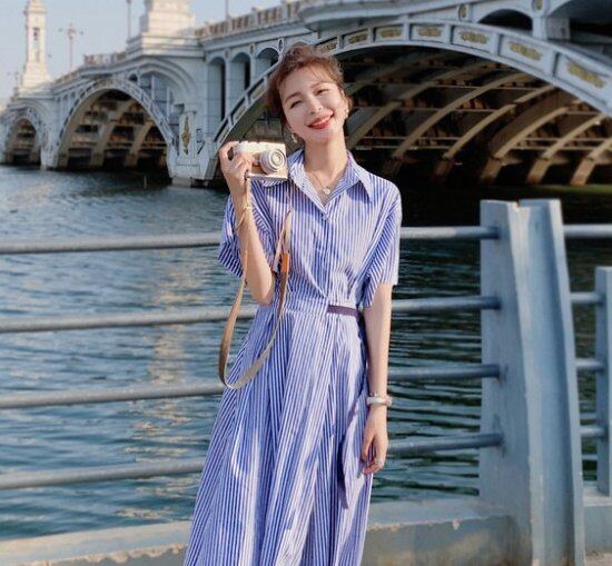 シンプルで上品なこれ1枚でスタイルが決まるストライプワンピース。
