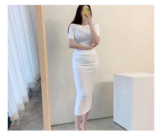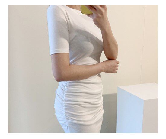 ワンピース レディース 大きいサイズ エレガント タイトワンピース Iライン ギャザー 半袖 スリット入り ロングワンピース クルーネック 大人 上品 カジュアル デート スリム 無地 シンプル