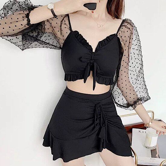水着 レディース タンキニ 3点セット 長袖レース ビキニ 体型カバー セパレート 水泳 海水浴 プール ビーチ 夏 セット デザイン スイム マリンウェア トレンド リゾート 夏 セクシー