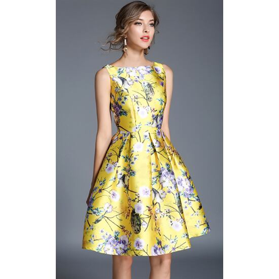 花柄ワンピース 大きいサイズ XL 2XL スリムフィット Aラインスカート ノースリーブ プルオーバー ラウンドネック ミドルスカート 花柄 ふんわりスカート カジュアル 大人可愛い お呼ばれ