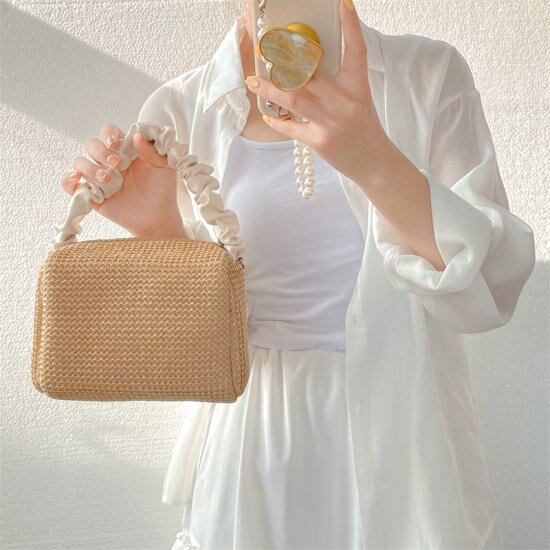 ハンドバッグ ショルダーバッグ レディース 2way かごバッグ ハンドルギャザー チェーンショルダーバッグ ミニバッグ ミニハンドバッグ スクエアバッグ 春 夏 かわいい カジュアル 大人