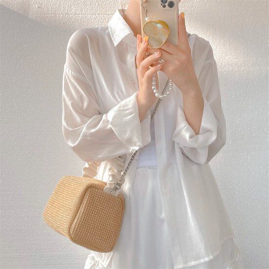 夏らしいスクエアミニハンドバッグ、ショルダーチェーンもついているのでショルダーバッグとしても使えます。