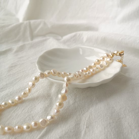 一つ一つが少しずつ違う真ん丸じゃないパールがおしゃれなネックレス♪