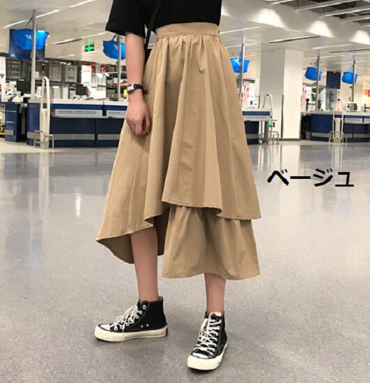 ロングスカート レディース 春夏 カジュアル ロング丈 着痩せ 体型カバー 黒 ボトムス 無地 ハイウエスト Aライン 不規則 不規則裾 フレアスカート ロングスカート レディース 春夏 カジュアル