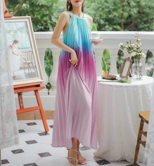 リゾートワンピース キャミソールワンピース レディース 夏新作 リゾート ロング丈 体型カバー 大きいサイズ マキシ丈ワンピース グラデショーン リゾートワンピース キャミソールワンピース レディース