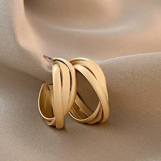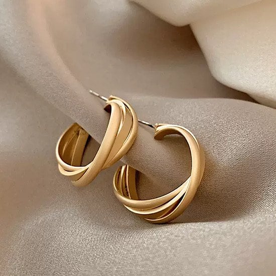 3連サークルを緩やかにねじったデザインがモダンな印象を演出してくれるフープピアス。