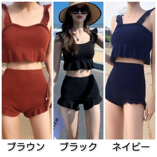 水着 タンキニ ビキニ 上下セット 2点セット 体型カバー フリル 3色 オレンジ ブラック ネイビー カジュアル 可愛い 水着 タンキニ 上下セット 体型カバー フリル 大きいサイズ 可愛い